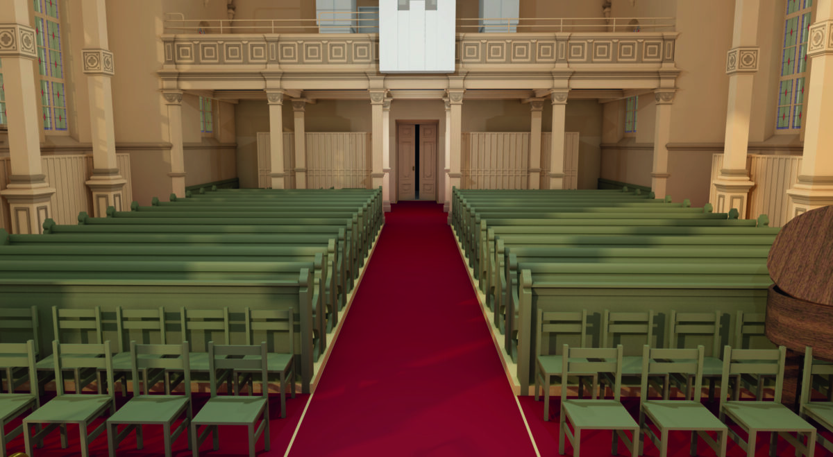 Kuvassa: Suunnitelmissa kuoriosan lattia lasketaan 15 sentillä samaan tasoon viereisen sakastin lattiatason kanssa. Alttaria ollaan madaltamassa ja sen edessä olevat porrasaskelmat poistetaan. Myös alttarikaidetta lyhennetään ja tutkitaan sen muokkaamista siirrettäväksi. Kuoria levitetään yhden porrasaskelman verran kirkkosaliin päin ja se varustetaan luiskalla. Holvikaton maalaukset ja rappaukset konservoidaan. Kirkon etuosaan suunnitellaan paikkaa flyygelille. Myös äänentoisto ja mahdolliset heijastusmahdollisuudet kuuluvat suunnitelmiin.