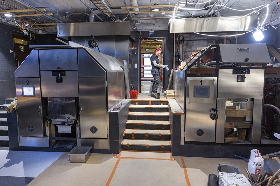 Edellinen kuva Seuraava kuva Krematorio_JG7A7689_edit Mäntykankaan krematorion korjaustöissä puhdistusta suorittaa Jasmin Flinkman, JVT ja pesutekniikka Oy:sta